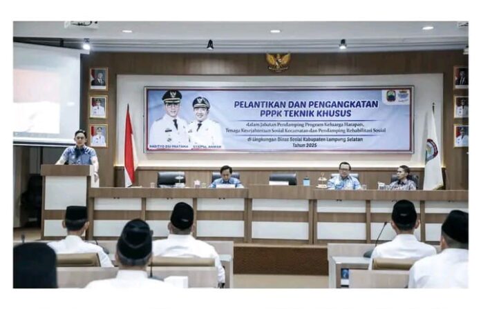 DetailNews.id – Sebanyak 215 Pegawai Pemerintah dengan Perjanjian Kerja (PPPK) Teknis Khusus Kementerian Sosial yang bertugas di Kabupaten Lampung Selatan resmi menerima Surat Keputusan (SK) pengangkatan.