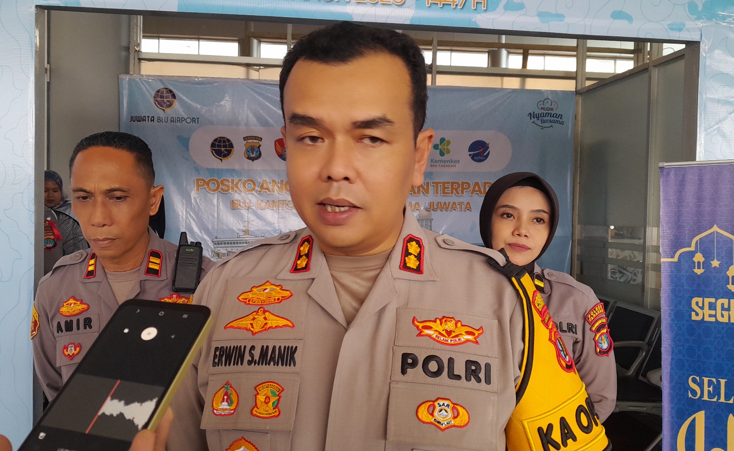 “Penekanan beliau adalah anggota harus memberikan pelayanan optimal, termasuk berkoordinasi dengan instansi terkait untuk layanan kesehatan bagi masyarakat di pos-pos yang ada,” ujar Kapolres Tarakan saat ditemui di Posko Angkutan Lebaran Terpadu BLU Kantor UPBU Kelas I Utama Bandar Udara Juwata Tarakan.