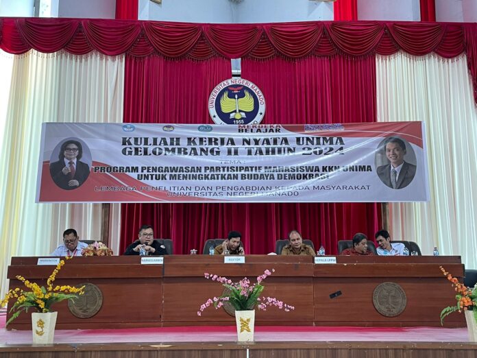DetailNews.id – Badan Pengawas Pemilihan Umum Provinsi Sulawesi Utara (Sulut) – Anggota Bawaslu Sulut Erwin Sumampouw menjadi narasumber pada pembekalan Kuliah Kerja Nyata (KKN) Gelombang II Tahun 2024 yang digelar oleh Universitas Negeri Manado (Unima) melalui Lembaga Penelitian dan Pengabdian kepada Masyarakat (LPPM), bertempat di Auditorium Walanda Maramis Unima, Senin (30/9/2024) kemarin.