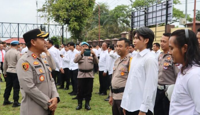 DetailNews.id – Dalam rangka memperkuat disiplin dan meningkatkan profesionalisme di lingkungan Polres Kotamobagu, Kapolres Kotamobagu AKBP Irwanto turun langsung memimpin kegiatan Penegakan dan Penertiban Disiplin (Gaktibplin) terhadap seluruh personel, usai pelaksanaan apel pagi di lapangan Mapolres Kotamobagu, Senin (6/10/2025).