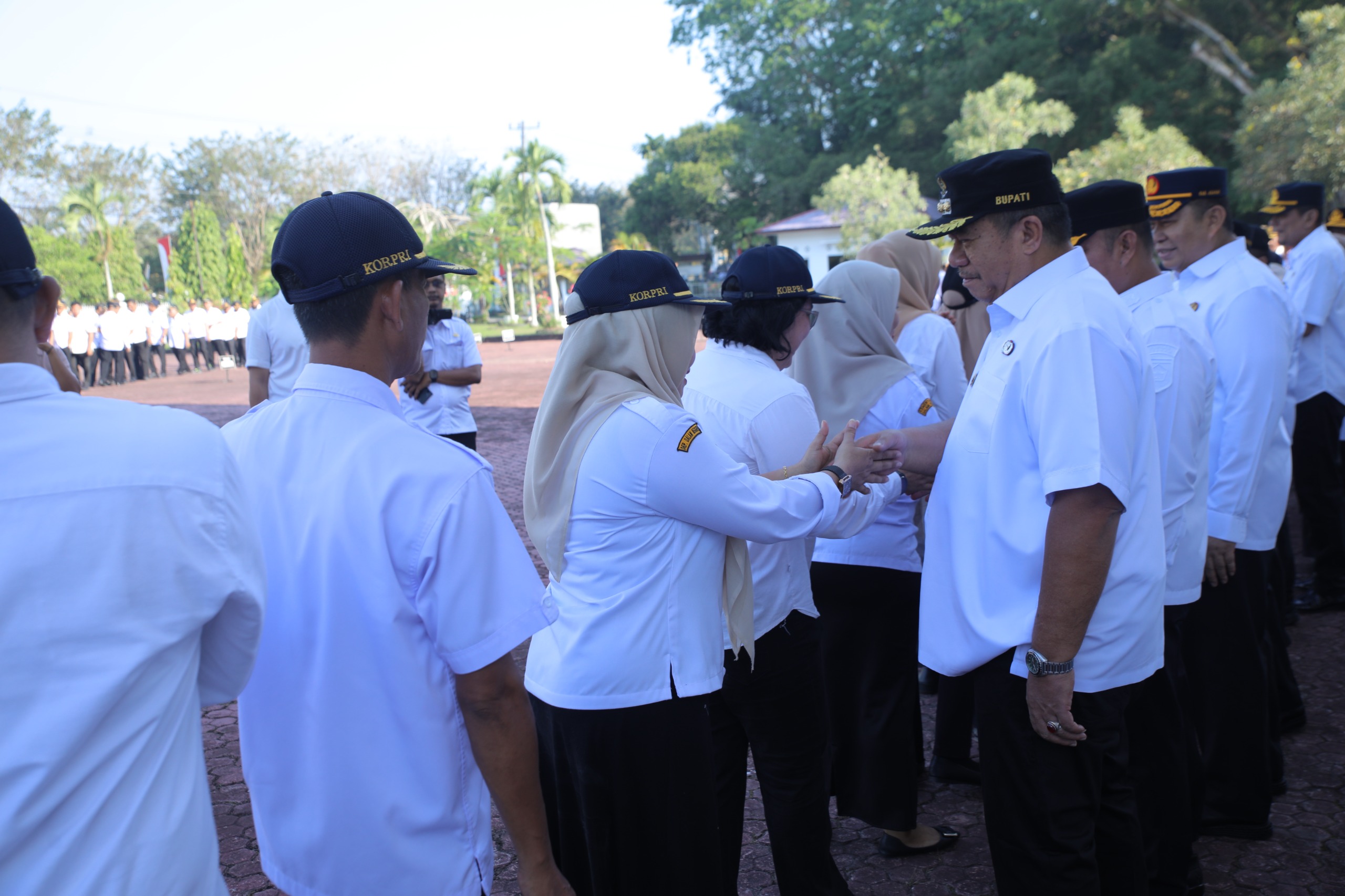 Kegiatan apel tersebut kemudian dilanjutkan dengan tradisi saling bersalaman antara ASN dengan Bupati dan Wakil Bupati Asahan.