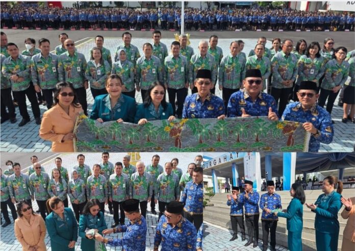 DetailNews.id, Bitung – Pemerintah Kota Bitung resmi meluncurkan Batik Harmoni, motif batik baru yang diproyeksikan menjadi identitas budaya daerah sekaligus simbol kerukunan masyarakat pesisir. Peluncuran tersebut berlangsung bertepatan dengan peringatan HUT Korps Pegawai Republik Indonesia (KORPRI) ke-54 di Lapangan Kantor Wali Kota Bitung, Senin (1/12/2025).
