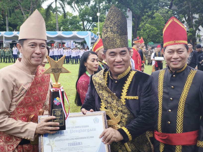 DetailNews.id – Pemerintah Kabupaten Bolaang Mongondow Selatan (Bolsel) meraih Penghargaan Terbaik I dalam Kategori Kinerja Pelaksanaan dan Aksi Konvergensi Penurunan Stunting Tahun 2024, yang diserahkan langsung oleh Gubernur Sulawesi Utara, Mayjen TNI (Purn) Yulius Selvanus, SE kepada Bupati Bolsel, Hi. Iskandar Kamaru, S.Pt, M.Si, pada momentum Upacara Peringatan HUT ke-61 Provinsi Sulawesi Utara, Selasa (23/09/2025).