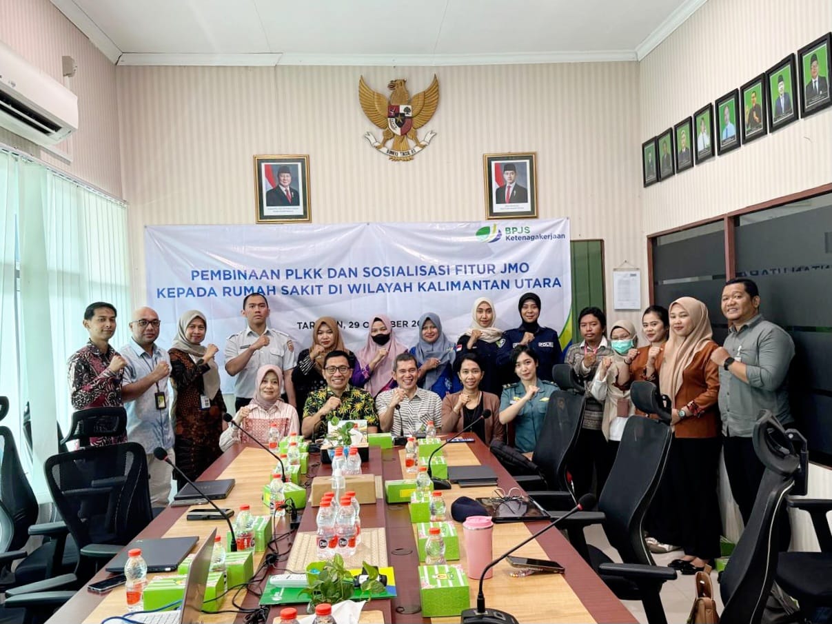 Sejumlah perwakilan rumah sakit yang menjadi mitra Pusat Layanan Kecelakaan Kerja (PLKK) di Kalimantan Utara (Kaltara) mengikuti kegiatan Pembinaan PLKK dan Sosialisasi Aplikasi Jamsostek Mobile (JMO) yang diselenggarakan di Ruang Rapat Kantor BPJS Ketenagakerjaan Cabang Tarakan, Rabu (29/10/25).