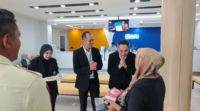 Dipimpin langsung oleh Pimpinan Cabang (Pinca) Cepi Epianto, jajaran pimpinan dan karyawan BRI Cabang Kotamobagu memberikan kejutan berupa bingkisan simbolis kepada para nasabah yang datang melakukan transaksi di kantor cabang.