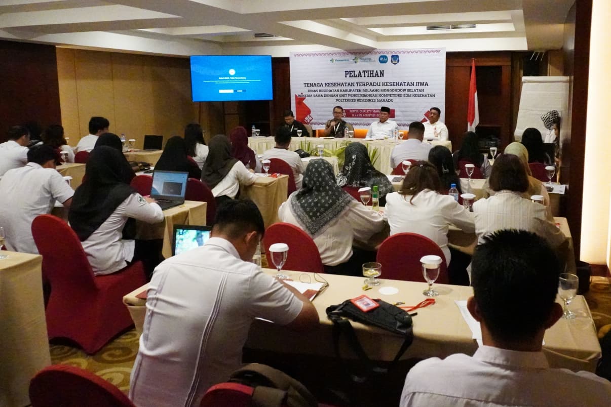 Pelatihan yang bertujuan untuk meningkatkan kemampuan, pengetahuan, keterampilan dan kualitas dalam penanganan dan layanan kesehatan jiwa, Resmi di buka Wakil Bupati Bolaang Mongondow Selatan Deddy Abdul Hamid dan di hadiri kepala poltekes Manado yang diwakili kepala dinas kesehatan bersama jajaran dan para peserta pelatihan.