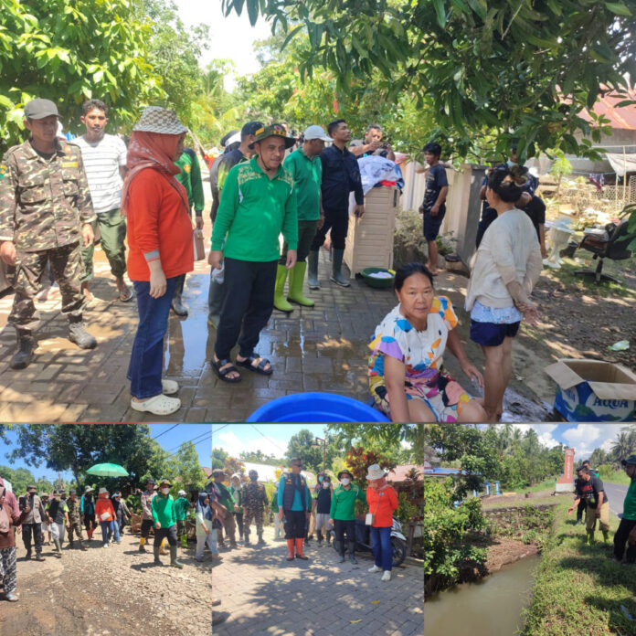 DetailNews.id, Bolmong – Bupati Bolaang Mongondow (Bolmong) Yusra Alhabsyi bersama Ketua TP-PKK Kabupaten Bolmong, Ny. Kalsum Alhabsyi, turun langsung meninjau sejumlah desa di Kecamatan Poigar yang terdampak banjir, Sabtu (01/11/2025).