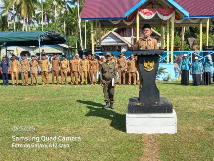 DetailNews.id, Buol – Pemerintah Kecamatan Momunu, Kabupaten Buol, melaksanakan apel gabungan perangkat desa se-Kecamatan Momunu untuk bulan Oktober 2025. Kegiatan ini dipusatkan di Desa Wakat, dengan Camat Momunu, Bapak Syarifudin Tarakal, S.H., bertindak sebagai pembina apel.