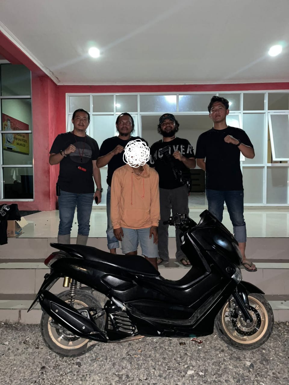 Hasil interogasi terhadap SLT mengarahkan tim ke lokasi penyimpanan barang bukti. Sekitar pukul 00.45 Wita, Sabtu dini hari (27/09/2025), satu unit motor Yamaha NMAX yang identik dengan laporan korban berhasil diamankan.