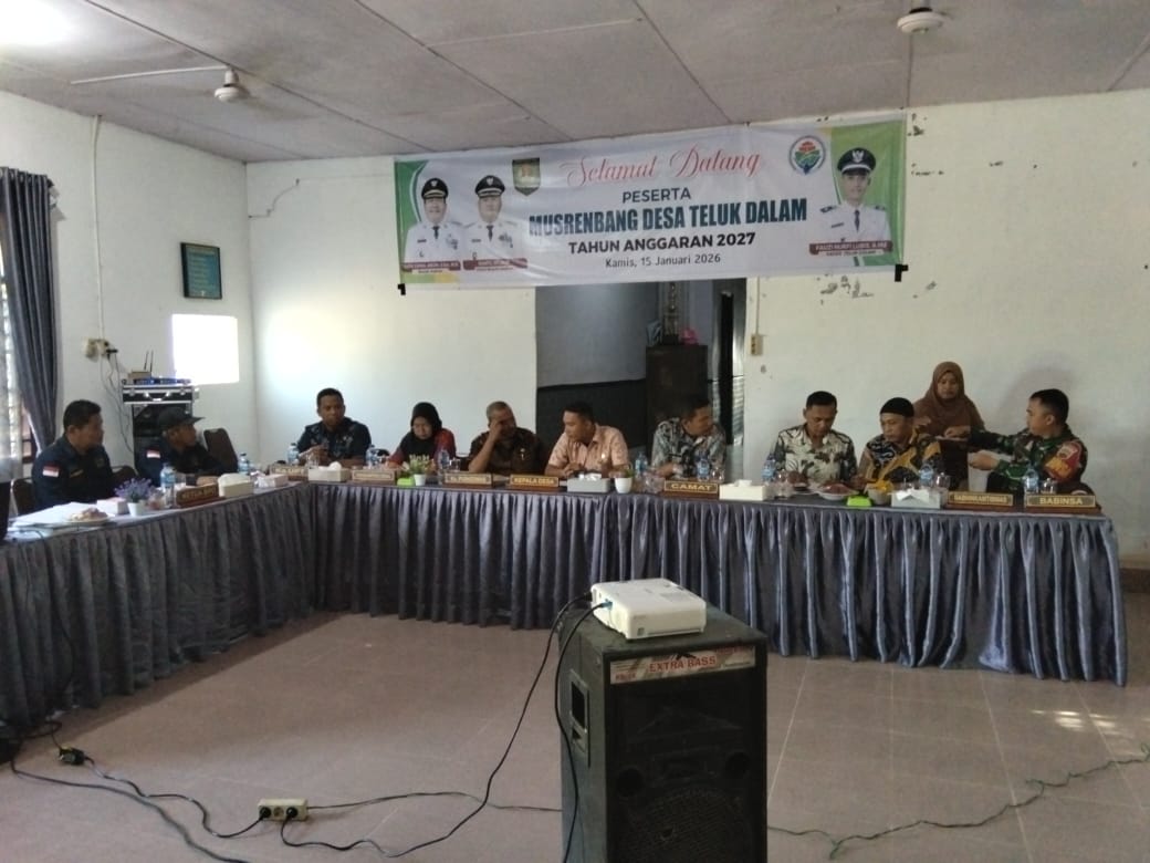 Musrenbang Desa Teluk Dalam menjadi momentum penting bagi pemerintah desa bersama seluruh pemangku kepentingan untuk menyusun prioritas kebutuhan masyarakat sesuai arahan kebijakan pembangunan daerah. Kegiatan ini dihadiri oleh Sekretaris Camat Teluk Dalam beserta jajarannya, Babinsa Desa Teluk Dalam, Kepala Puskesmas Air Teluk Kiri, Kepala Desa Teluk Dalam, anggota TP PKK, Badan Permusyawaratan Desa (BPD), Lembaga Pemberdayaan Masyarakat (LPM), Karang Taruna (Katar), serta seluruh perangkat desa.