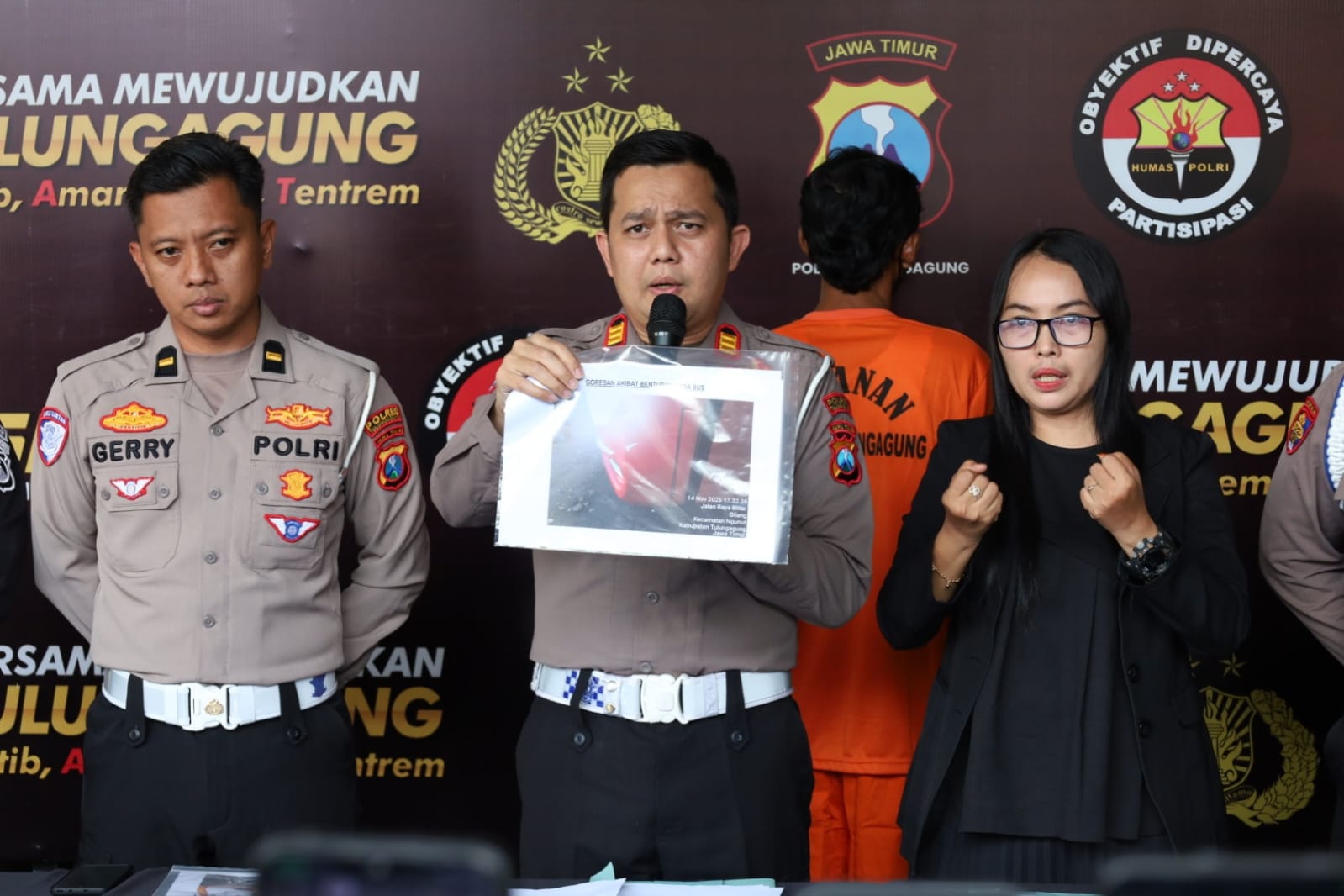 Dalam konferensi pers yang digelar Satlantas Polres Tulungagung di halaman Mako Polres pada Sabtu (15/11/2025), dijelaskan bahwa kecelakaan bermula ketika bus yang dikemudikan Kris Wahyudi (46) melaju dari arah timur menuju barat. Saat itu, sopir bus berusaha mendahului sebuah sepeda motor di depannya.