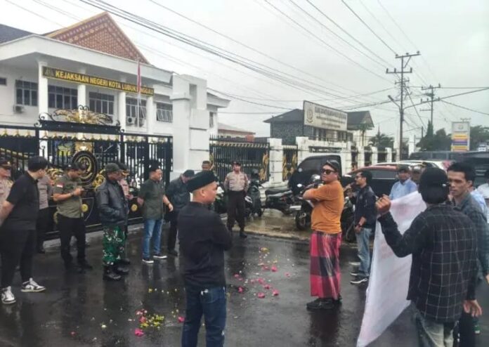 DetailNews.id, Lubuk Linggau – Gerakan Pemuda Demokrasi Musi Rawas–Lubuk Linggau–Muratara (GPD-MLM) menggelar aksi damai di depan Kantor Kejaksaan Negeri (Kejari) Lubuk Linggau, Rabu (02/02/2026). Aksi tersebut dilakukan sebagai bentuk desakan terhadap aparat penegak hukum agar mengusut secara serius sejumlah dugaan tindak pidana korupsi, khususnya kasus pengadaan Alat Pemadam Api Ringan (APAR) di Kabupaten Musi Rawas Utara (Muratara).