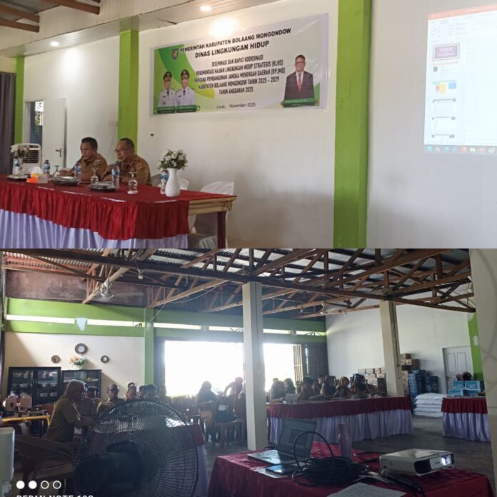 DetailNews.id, Bolmong – Pemerintah Kabupaten Bolaang Mongondow melalui Dinas Lingkungan Hidup melaksanakan Diseminasi dan Rapat Koordinasi Rekomendasi Kajian Lingkungan Hidup Strategis (KLHS) untuk Rencana Pembangunan Jangka Menengah Daerah (RPJMD) Tahun 2025–2029, bertempat di Lolak, Selasa (25/11).