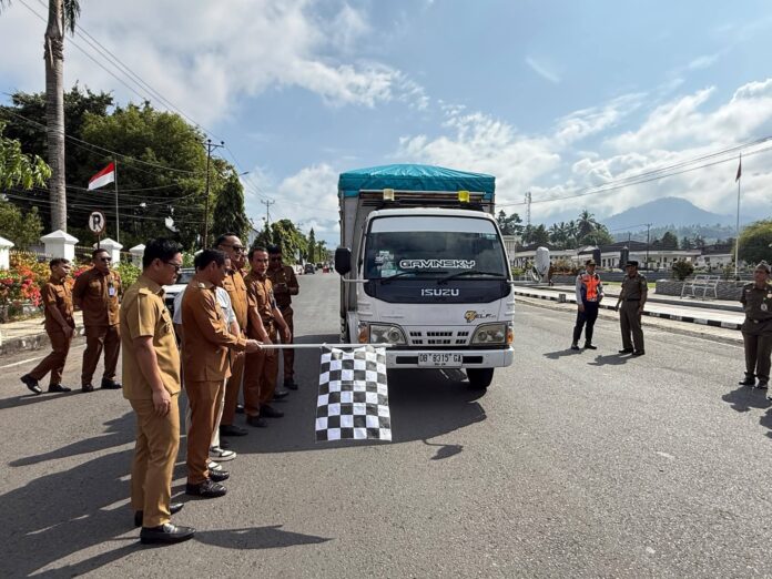 DetailNews.id, Kotamobagu – Weny Gaib didampingi Rendy Mangkat melepas distribusi bantuan pangan bagi masyarakat usai apel kerja, Senin (30/3). Sebanyak 12.118 warga tercatat sebagai penerima dalam program tersebut.
