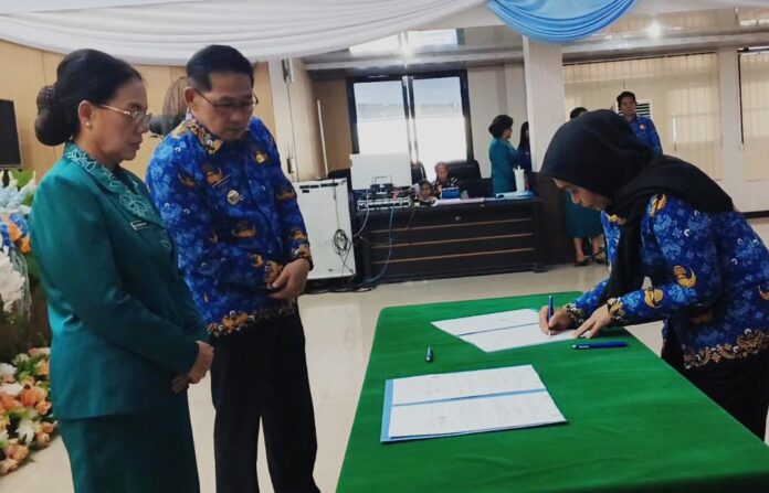 DetailNews.id, Bitung – Dinas Lingkungan Hidup (DLH) Kota Bitung bersama TP-PKK Kota Bitung resmi menandatangani nota kesepahaman (MoU) terkait pengolahan sampah rumah tangga menjadi kompos. Kesepakatan ini diteken dalam rangkaian peringatan Hari Kesatuan Gerak (HKG) PKK ke-54 di Ruang SH Sarundajang, Kamis (23/4/2026).