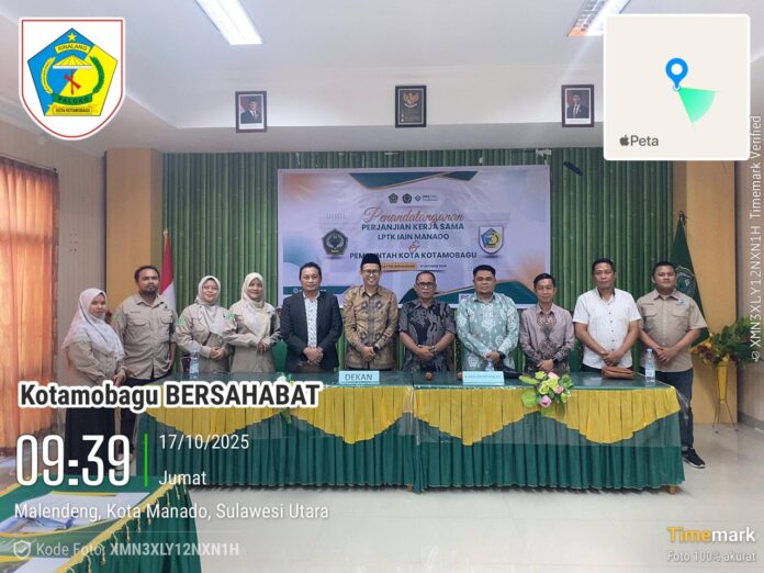 DetailNews.id, Kotamobagu – Dalam upaya meningkatkan kualitas tenaga pendidik di wilayahnya, Dinas Pendidikan Kota Kotamobagu menandatangani Perjanjian Kerja Sama (PKS) dengan Institut Agama Islam Negeri (IAIN) Manado, pada Jumat (17/10/2025). Penandatanganan dilakukan langsung oleh Kepala Dinas Pendidikan Kotamobagu, Moh. Aljufri Ngandu, S.Pd., MM., dan Rektor IAIN Manado, Prof. Dr. Ahmad Rajafi, M.H.I., di kampus IAIN Manado.