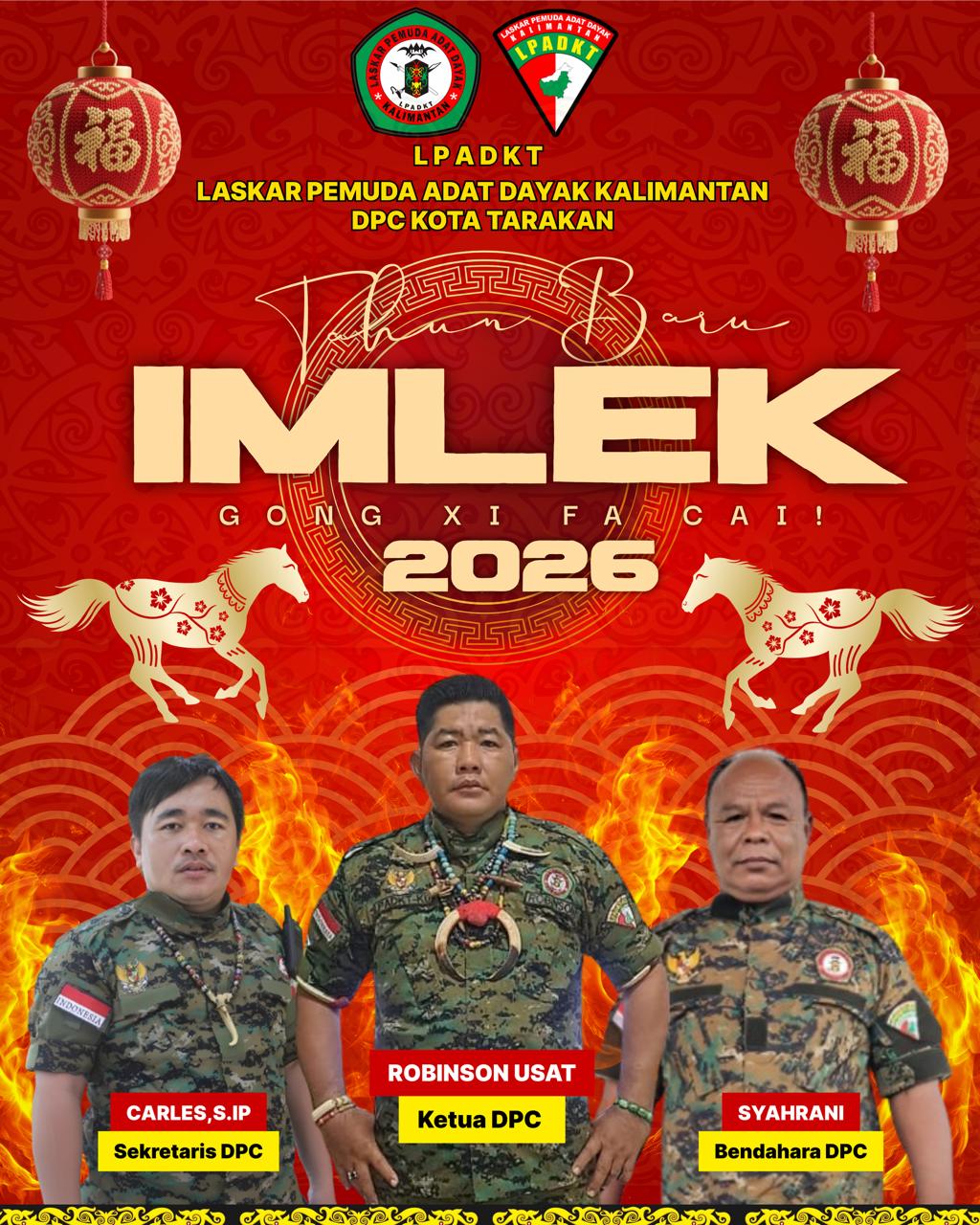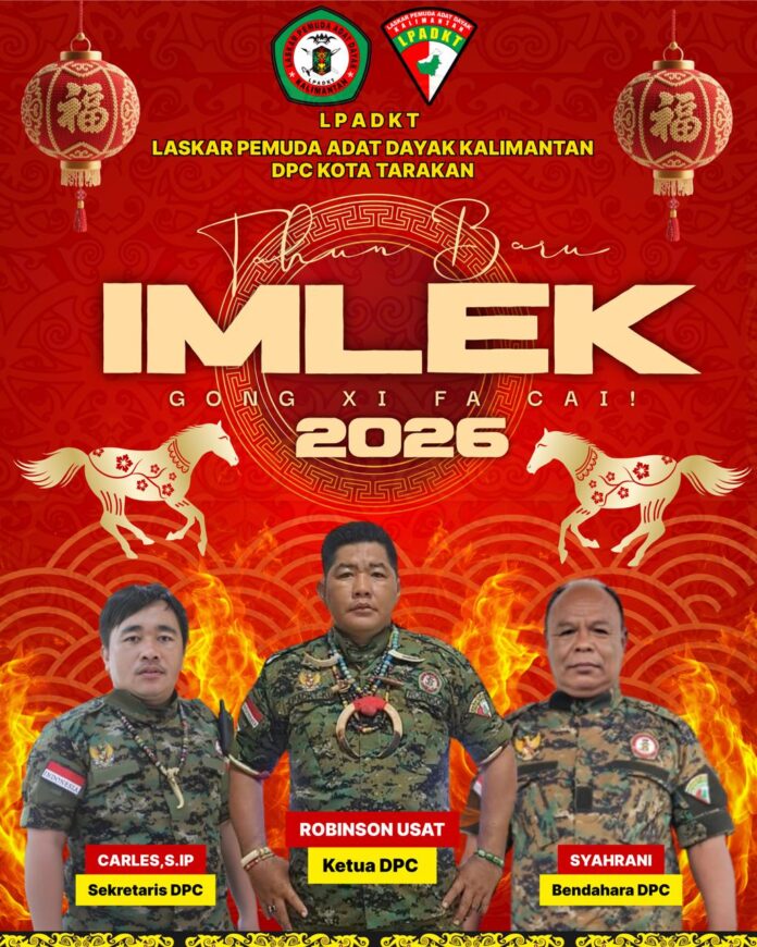 DetailNews.id, Tarakan – Dewan Pimpinan Cabang (DPC) Laskar Pemuda Adat Dayak Kalimantan (LPADKT) Kota Tarakan menyampaikan ucapan selamat Tahun Baru Imlek 2026 kepada seluruh masyarakat, khususnya umat Tionghoa yang merayakan.