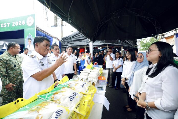 DetailNews.id, Sulut- Menjelang bulan suci Ramadan, Pemerintah Provinsi Sulawesi Utara mengintensifkan langkah pengendalian harga melalui Gerakan Pangan Murah (GPM) yang digelar di Bitung, Rabu (25/02/2026). Kegiatan tersebut dipimpin langsung oleh Gubernur Sulawesi Utara, Yulius Selvanus Komaling, sebagai upaya menjaga stabilitas pasokan dan menekan laju inflasi daerah.