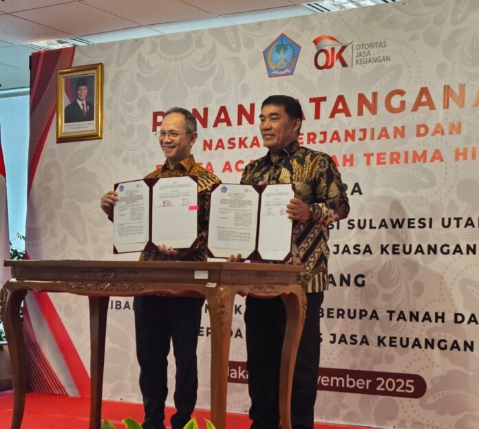 DetailNews.id, Sulut – Dalam upaya memperkuat sinergi kelembagaan dan mendukung kinerja pengawasan sektor keuangan di daerah, Pemerintah Provinsi Sulawesi Utara (Sulut) menyerahkan hibah aset senilai Rp11,16 miliar kepada Otoritas Jasa Keuangan (OJK). Penyerahan berlangsung di Jakarta, Rabu (5/11/2025), dan ditandai dengan penandatanganan Naskah Perjanjian Hibah Daerah (NPHD).