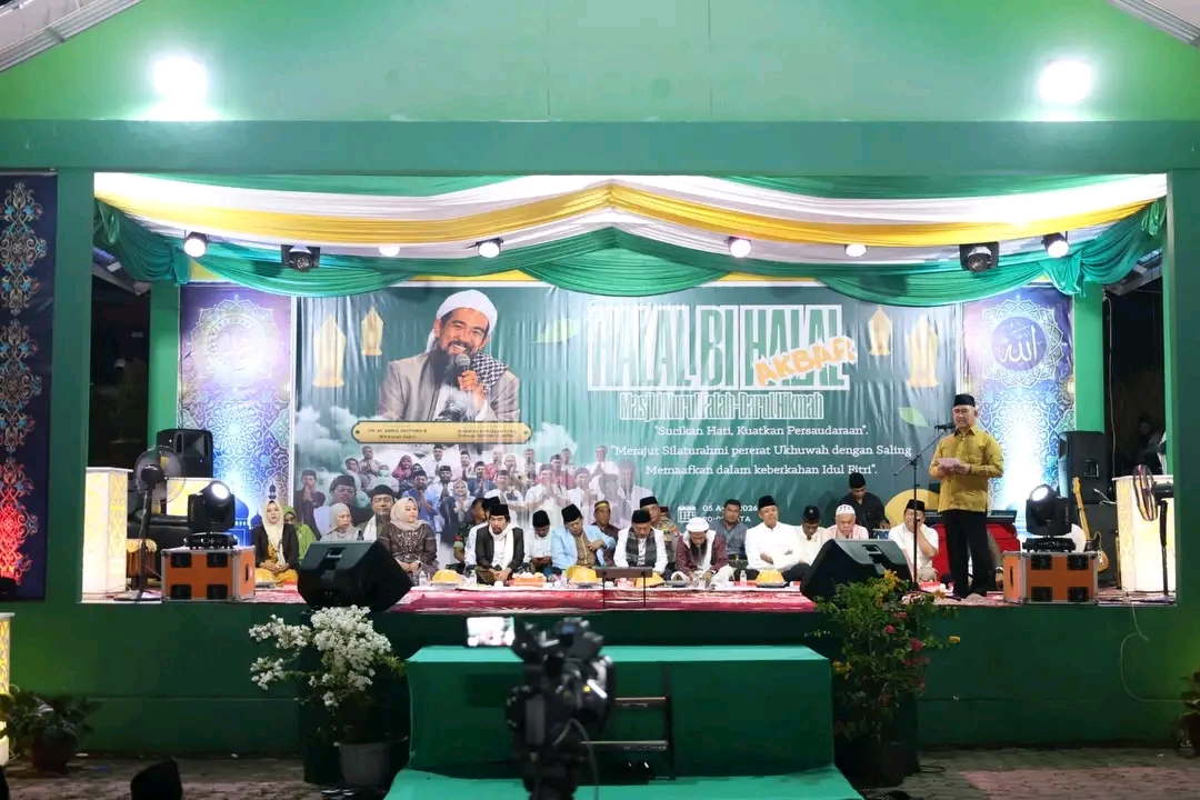 Pesan itu disampaikan Khairul saat menghadiri Halalbihalal Akbar di Masjid Nurul Falah, Juata Permai, Minggu (5/4/2026) malam, di tengah ratusan warga yang larut dalam suasana hangat dan penuh kebersamaan.