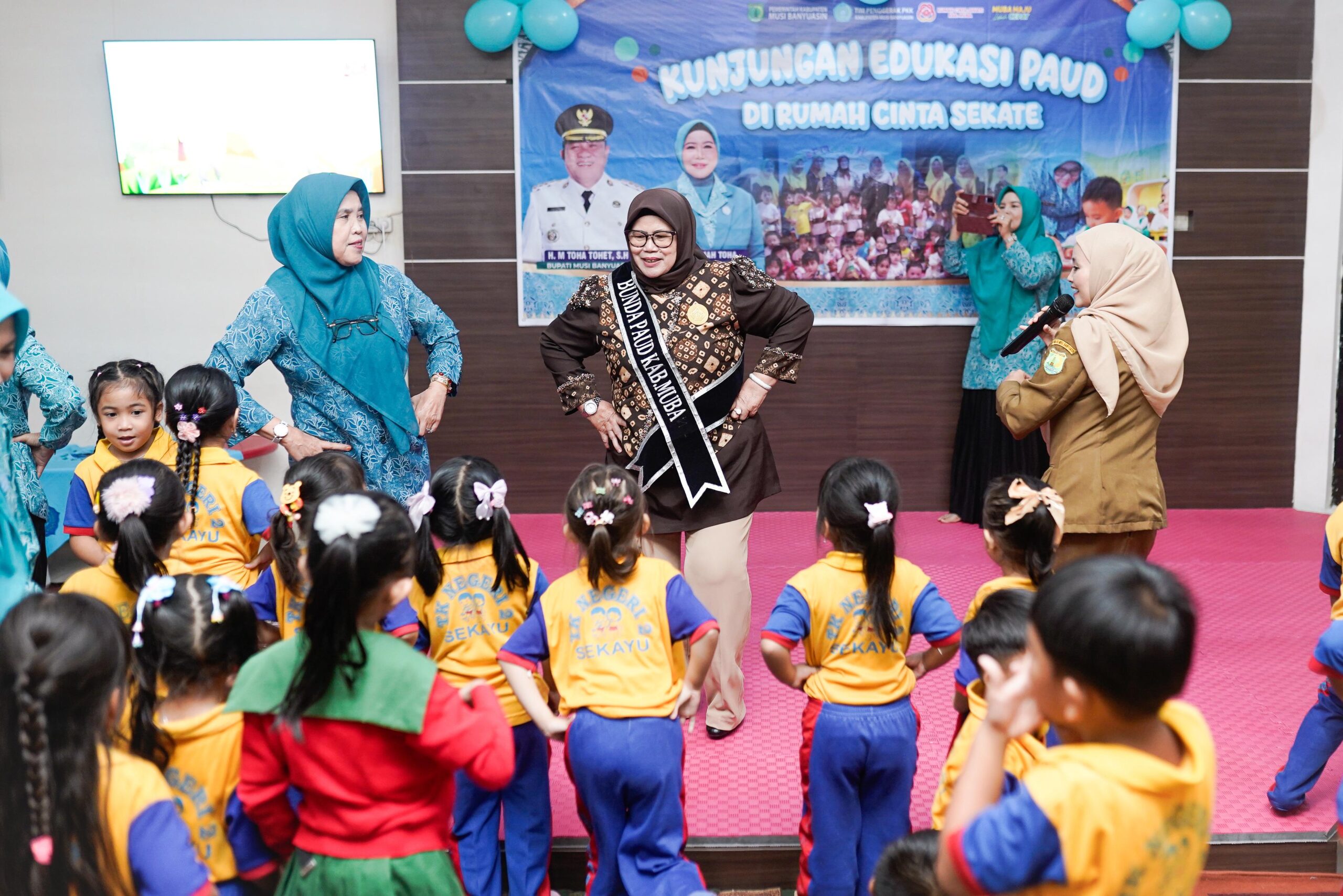 DetailNews.id, Muba – Antusiasme murid TK Negeri 2 Sekayu memenuhi Rumah Cinta Sekate pada Senin (01/12/2025), ketika Bunda PAUD Muba Hj Fatimah Toha hadir untuk mengikutkan mereka dalam kegiatan Kunjungan Edukasi Anak PAUD yang dikemas secara ceria dan interaktif.