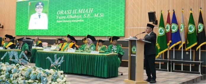 Menutup orasi ilmiahnya, Bupati Yusra Alhabsyi berpesan agar para wisudawan menjadikan ilmu sebagai alat pengabdian.