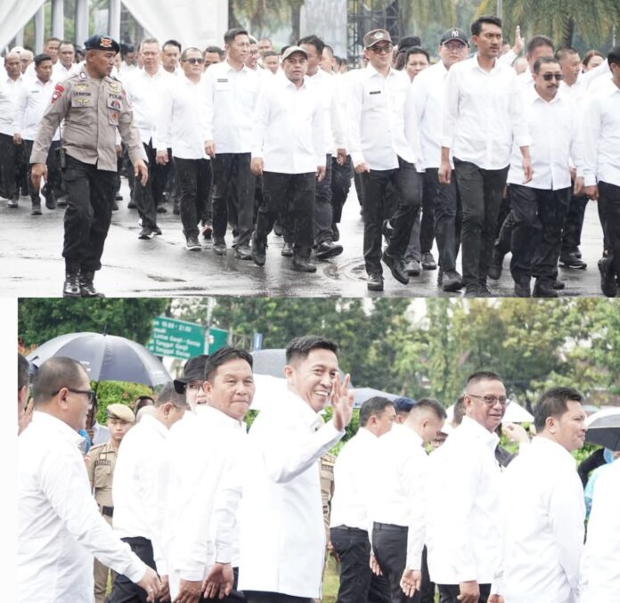 DetailNews.id – Bupati Bolaang Mongondow Selatan (Bolsel) Hi. Iskandar Kamaru, S.Pt., M.Si., dan Wakil Bupati Deddy Abdul Hamid tampak bersemangat saat mengikuti gladi bersih pelantikan di Istana Negara, Rabu (19/2/2025).