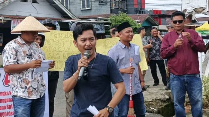 Dalam orasinya, peserta aksi lainnya, Angga Juliansyah Nasetion, menyoroti dasar hukum pengadaan APAR yang disebut mengacu pada Peraturan Bupati (Perbup). Ia menduga terdapat pihak yang memaksakan pengadaan APAR masuk ke dalam Perbup tanpa melalui mekanisme Musyawarah Desa (Musdes).