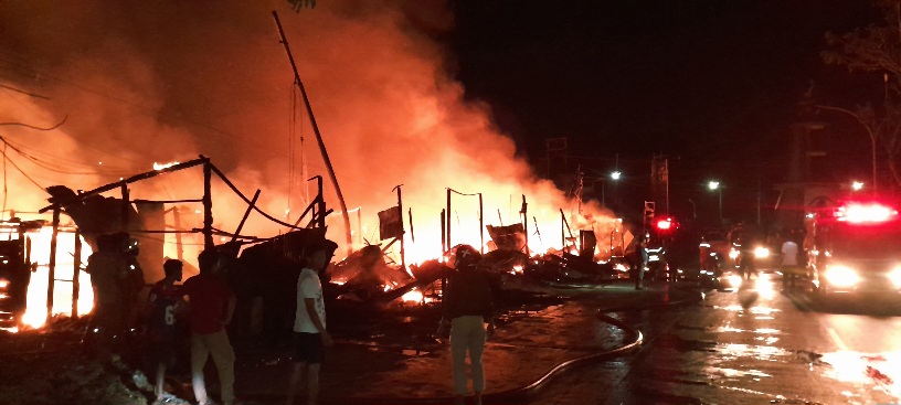 Peristiwa tersebut terjadi sekitar pukul 19.00 WITA, atau sesaat setelah pelaksanaan salat Maghrib. Api dengan cepat membesar dan menjalar ke sejumlah bangunan semi permanen yang berdempetan, sehingga sulit dikendalikan pada awal kejadian.