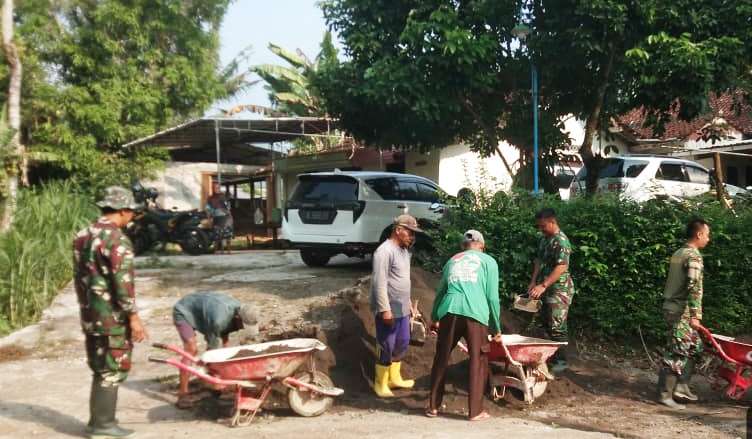 Babinsa Jatisarono mengungkapkan bahwa hari ini pihaknya bersama warga fokus melangsir material pasir dan batu split dari titik pengedropan ke titik pengerjaan jembatan.