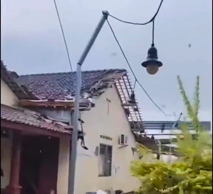 DetailNews.id, Tulungagung – Cuaca ekstrem kembali melanda Kabupaten Tulungagung pada Jumat (21/11/2025), memicu kepanikan warga di sejumlah wilayah. Hujan deras yang mengguyur sejak siang hari disertai angin kencang seperti pusaran menyebabkan kerusakan pada rumah penduduk, genangan besar di sejumlah ruas jalan, hingga membuat warga berlindung di bawah meja untuk menghindari reruntuhan.