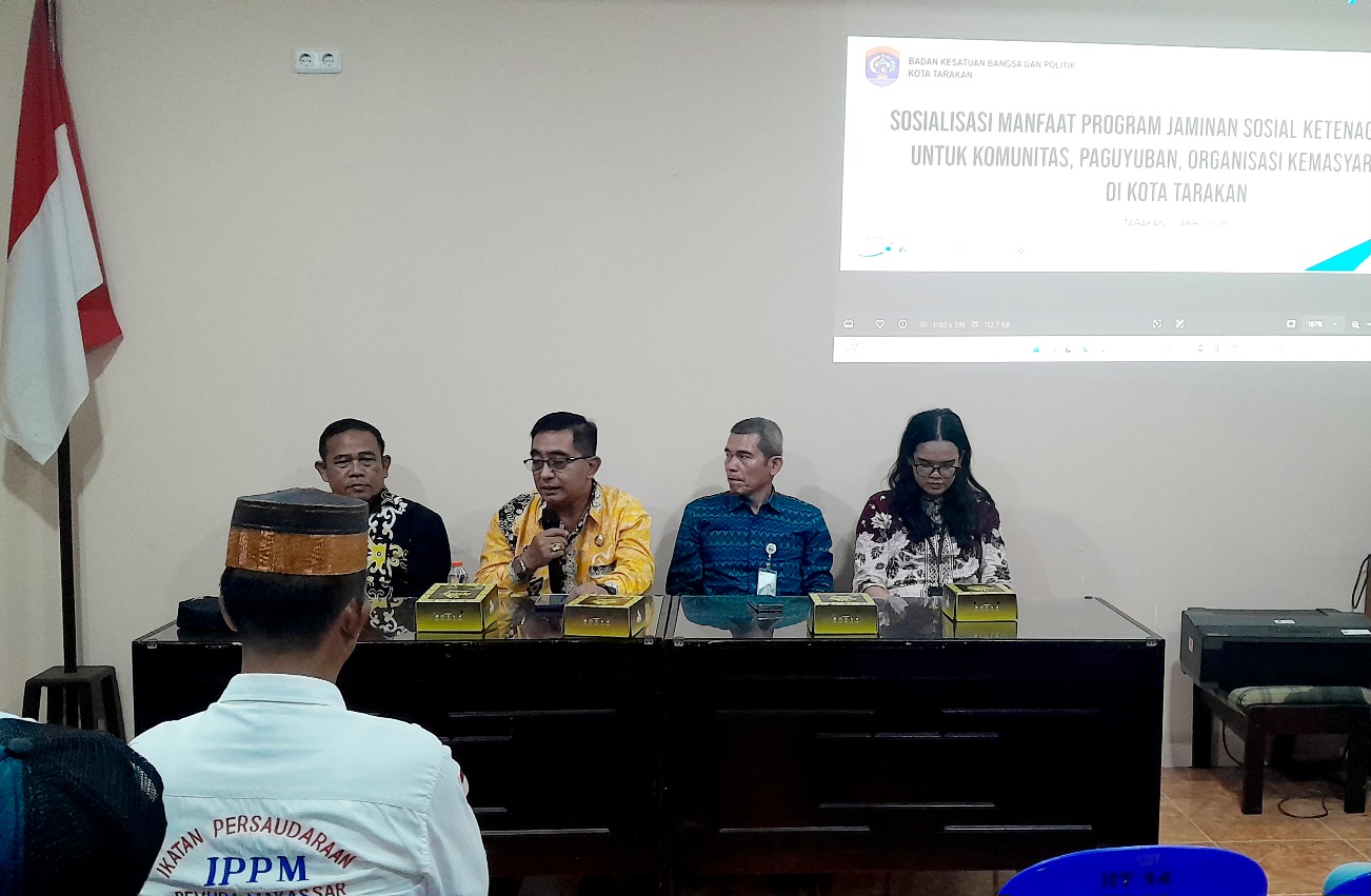 DetailNews.id, Tarakan – Badan Kesatuan Bangsa dan Politik (Kesbangpol) Kota Tarakan bekerja sama dengan BPJS Ketenagakerjaan Kota Tarakan menggelar sosialisasi manfaat program jaminan sosial ketenagakerjaan bagi komunitas, paguyuban, dan organisasi kemasyarakatan.