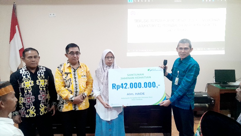 Penyerahan santunan kematian program BPJS Ketenagakerjaan.