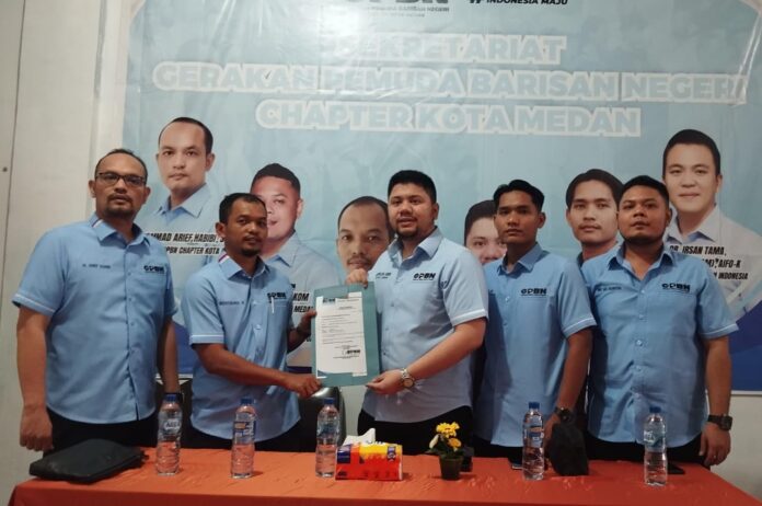 DetailNews.id – Ketua Umum Gerakan Pemuda Barisan Nasional (GPBN), Muhammad Daffasya Adnan Sinik, resmi menyerahkan Surat Keputusan (SK) kepengurusan GPBN Kota Medan, Sabtu (20/09/2025). Penyerahan dilakukan di Sekretariat GPBN Kota Medan yang berlokasi di Jalan Perguruan Tinggi Swadaya, Medan.
