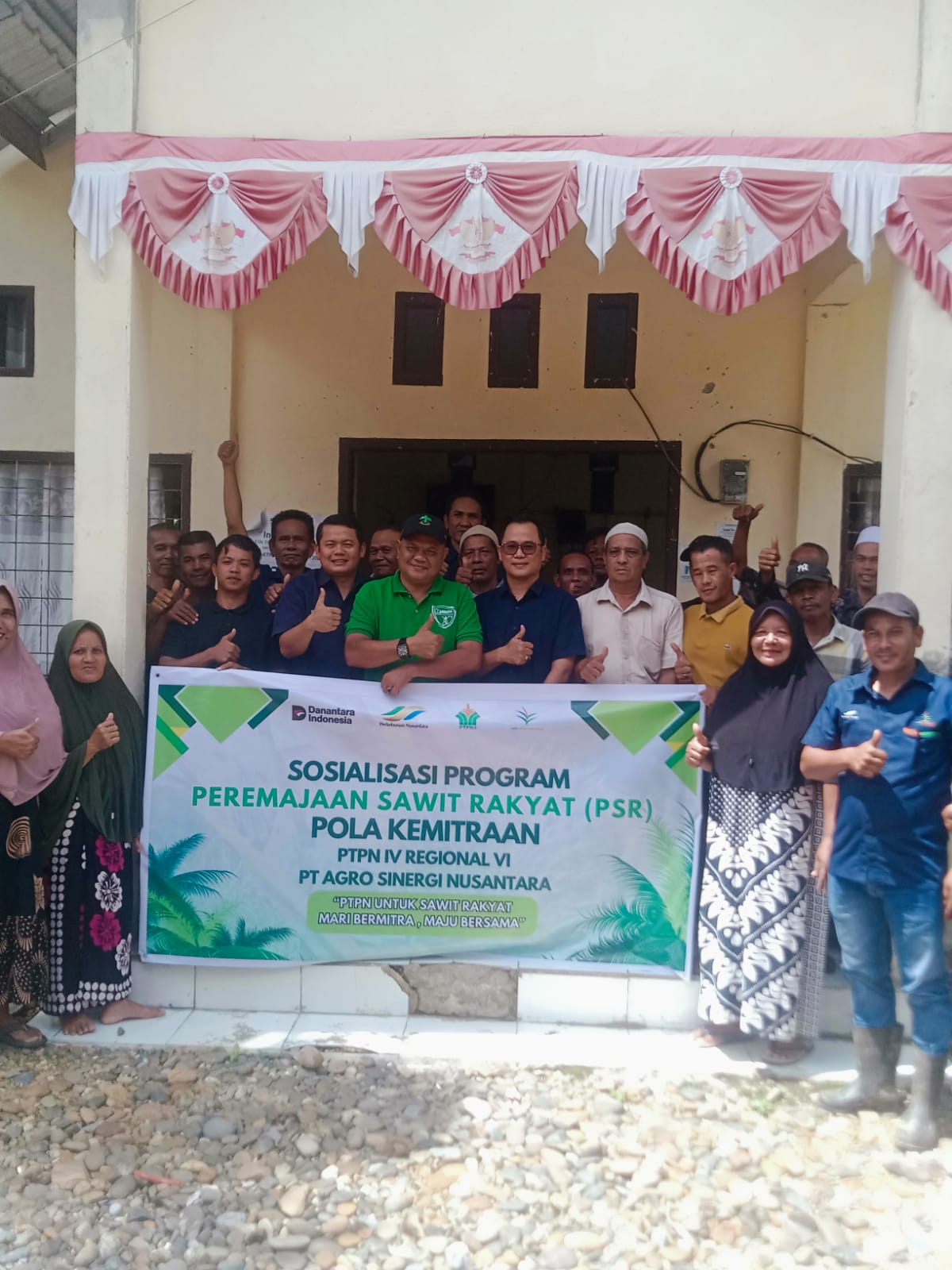 DetailNews.id, Aceh Barat – PTPN IV Regional VI bekerja sama dengan PT Agro Sinergi Nusantara (PT ASN) dan APKASINDO Aceh Barat menggelar sosialisasi Program Peremajaan Sawit Rakyat (PSR) kepada kelompok tani Ingin Tabina di Desa Jawi, Kecamatan Woyla, Aceh Barat, Rabu (12/11/2025).