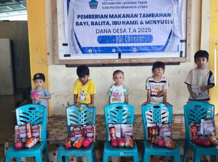 Adapun paket makanan tambahan yang diberikan berupa kacang hijau, telur Ayam, biscuits, kokocrunch, Dancow, Prenagen lactamom, Primago, Nutricia bebelove, Vidoran my baby, Prenagen mommy, dan Nutribaby royal. para penerima manfaat antusias dan berterima kasih atas perhatian pemerintah desa