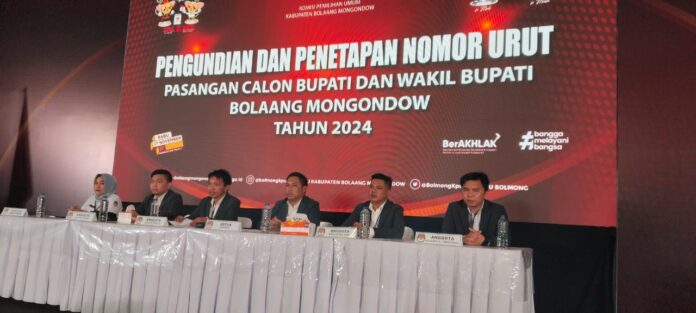 DetailNews.id, – Komisi Pemilihan Umum (KPU) Bolaang Mongondow (Bolmong) adalah salah satu lembaga penyelanggara yang menggelar Rapat Pleno terbuka Penetapan Nomor Urut Pasangan Calon Bupati dan Wakil Bupati Pada Pilkada 2024., di Gedung Bagas Raya, Yadika, Kopandakan II, Senin, 23/09/2024.
