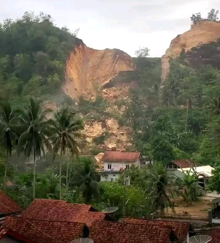 Gunung batu kapur setinggi sekitar 50 meter di wilayah tersebut diduga longsor akibat aktivitas tambang pabrik semen di sekitar Ajibarang.