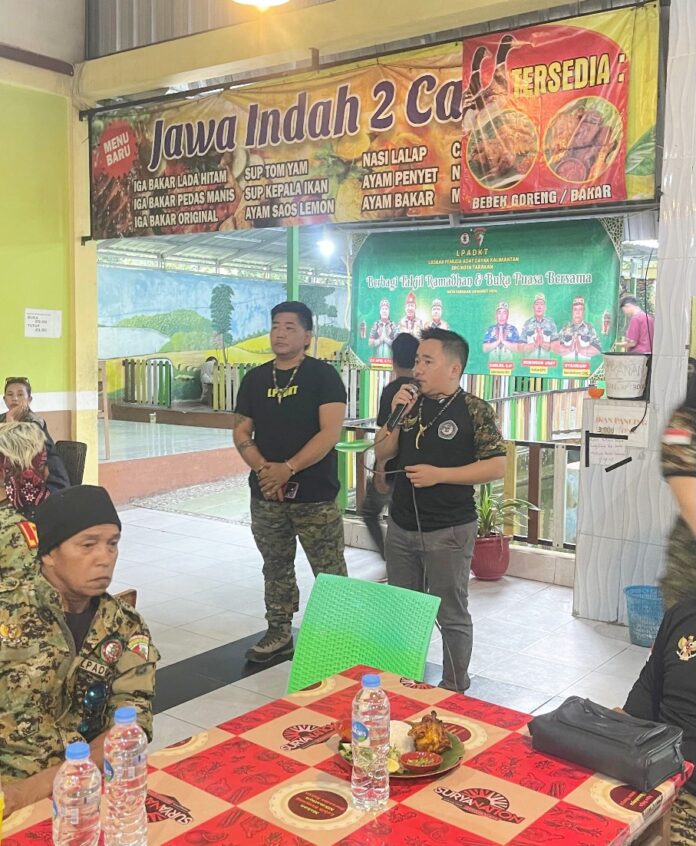 DetailNews.id, Tarakan – Usai membagikan 1.000 paket takjil kepada masyarakat, Dewan Pimpinan Cabang (DPC) Laskar Pemuda Adat Dayak Kalimantan Kota Tarakan melanjutkan kegiatan dengan buka puasa bersama sejumlah organisasi masyarakat (ormas), Minggu (8/3/2026).