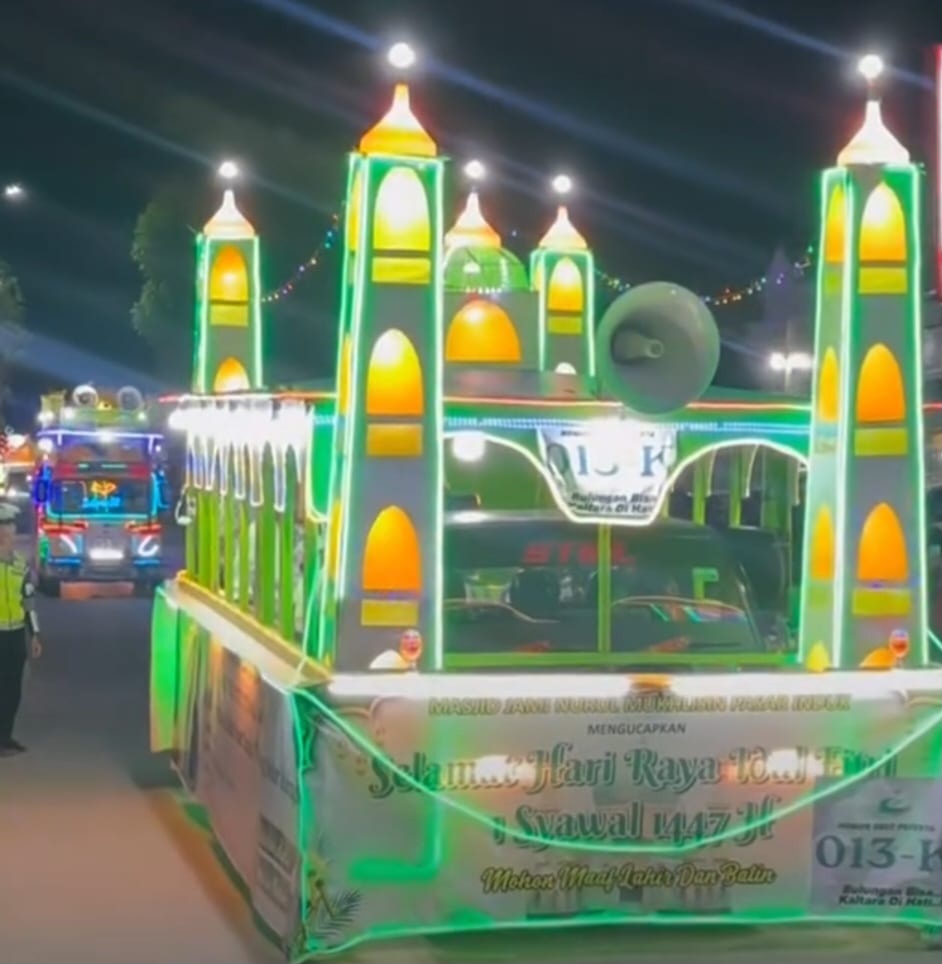 DetailNews.id, Bulungan – Malam takbiran Idulfitri 1447 Hijriah di Tanjung Selor, Kabupaten Bulungan, berlangsung meriah. Pawai takbiran yang digelar menyedot perhatian warga dengan deretan mobil hias yang tampil mencolok di sepanjang rute.
