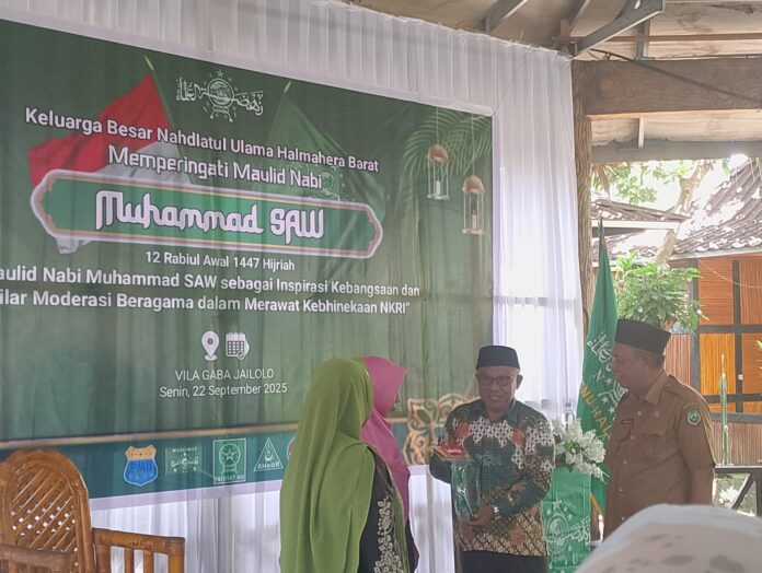 DetailNews.id – Dalam rangka memperkokoh dakwah kultural yang moderat dan memperkuat ukhuwah islamiyah di tingkat akar rumput, Muslimat Nahdlatul Ulama (NU) Halmahera Barat menyerahkan bantuan alat musik qasidah rebana kepada PAC Muslimat NU Kecamatan Sahu, Senin (22/09/2025), bertempat di Villa Gaba, Jailolo, dalam rangkaian kegiatan peringatan Maulid Nabi Muhammad SAW.