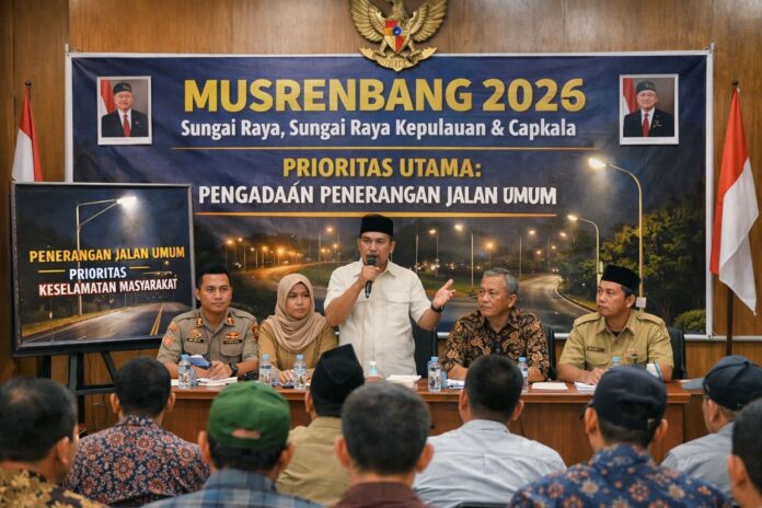 Musrenbang tersebut melibatkan tiga kecamatan, yakni Sungai Raya, Sungai Raya Kepulauan, dan Capkala, dalam rangka penyusunan Rencana Kerja Pemerintah Daerah (RKPD) Tahun 2027.