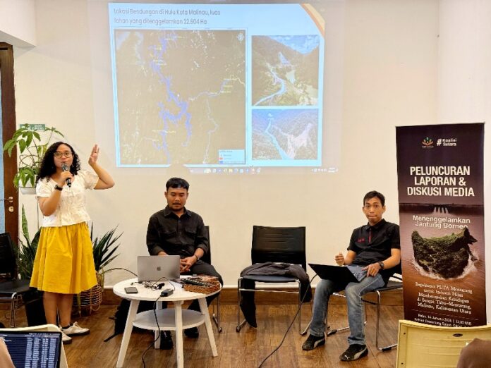 Temuan tersebut disampaikan NUGAL Institute for Social and Ecological Studies, Seny Ahmad dan Teresia Jari (Peneliti NUGAL Institute), Wisnu Tri Utomo (CELIOS), Hendro Sangkoyo (School of Democratic Economics) bersama Koalisi Selamatkan Kalimantan Utara (SETARA) dalam peluncuran laporan investigasi berjudul Menenggelamkan Jantung Borneo, Rabu (14/1/2026), di Jakarta.
