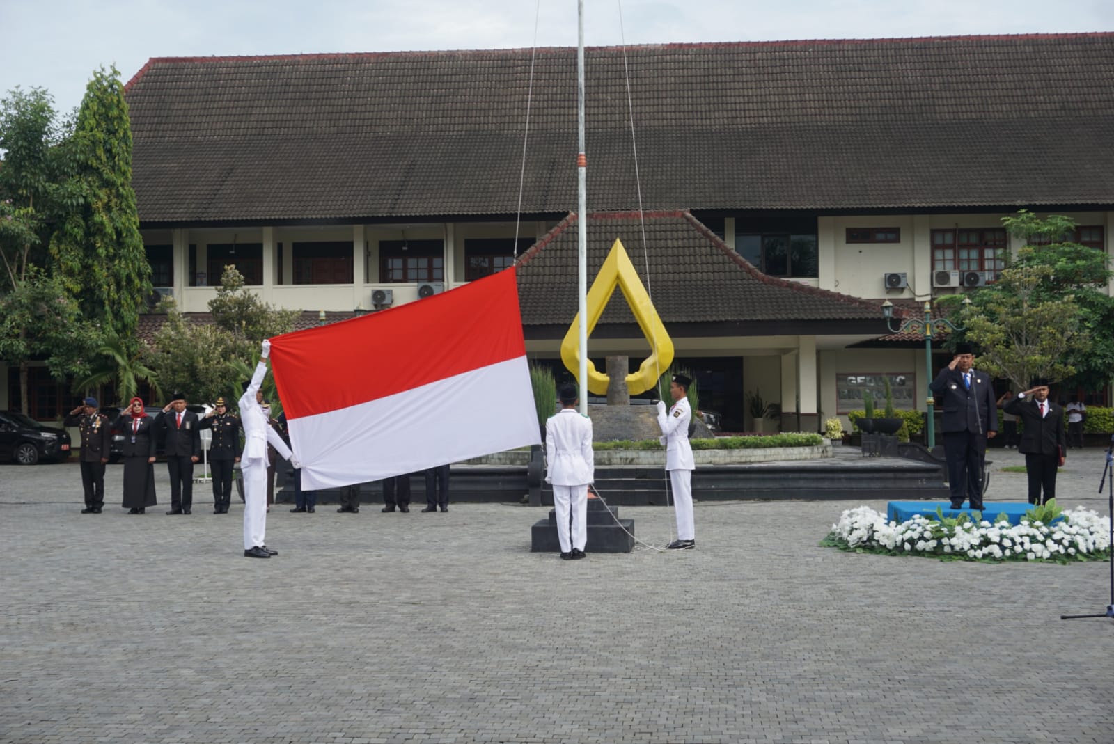 Hadir dalam upacara peringatan hari bersejarah bangsa ini Komandan Kodim 0731/Kulon Progo Letkol Inf Dyan Niti Sukma, SIP bersama Forkopimda serta pejabat OPD setempat.