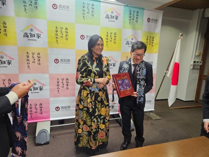 DetailNews.id, Jepang – Kunjungan kerja Pemerintah Provinsi Sulawesi Utara ke Prefecture Kochi mendapat sambutan resmi dari Gubernur Kochi, Hamada Seiji. Bertempat di Kantor Gubernur Kochi, Ibu Anik Yulius Selvanus bersama rombongan diterima langsung oleh Gubernur Hamada beserta jajaran kepala dinas terkait.