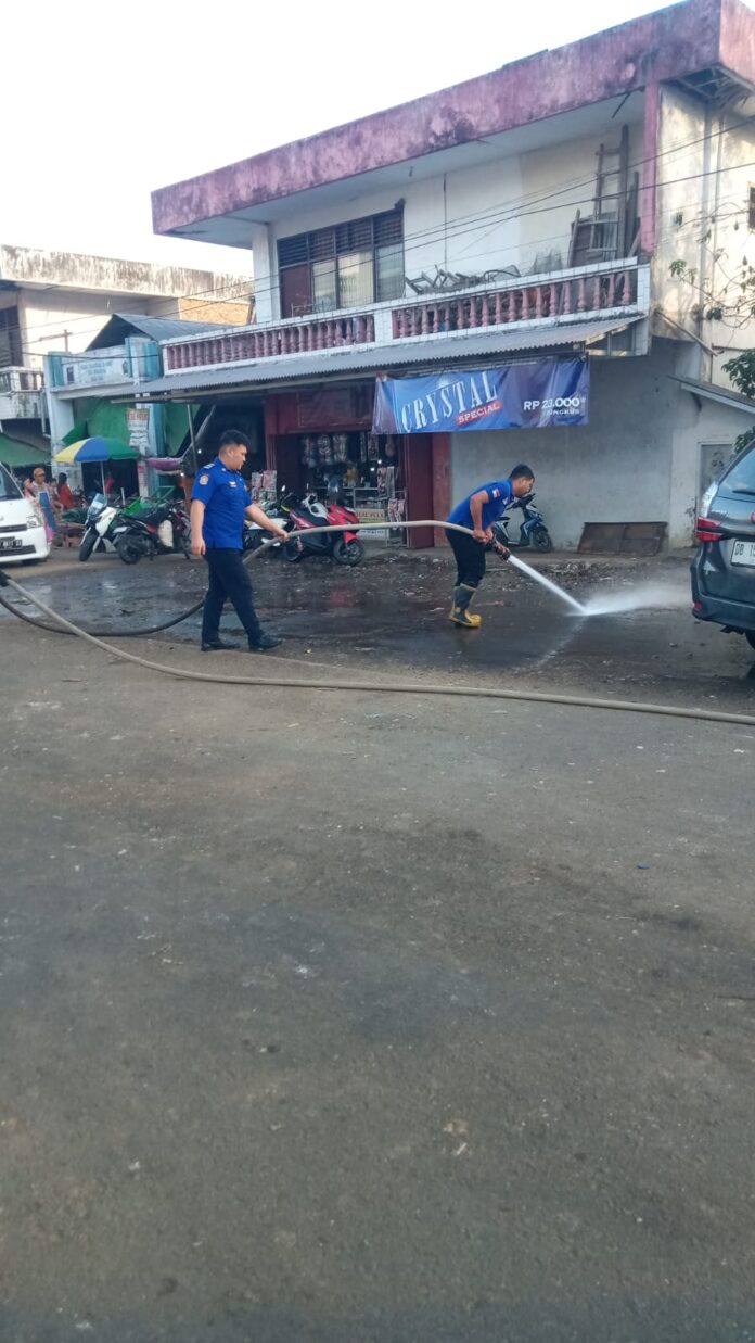 Langkah ini dilakukan setelah proses pengangkutan sampah di area pasar yang telah berlangsung sejak 23 Maret 2026. Penyiraman bertujuan untuk menghilangkan bau tidak sedap yang ditimbulkan dari sisa-sisa sampah yang sebelumnya menumpuk.