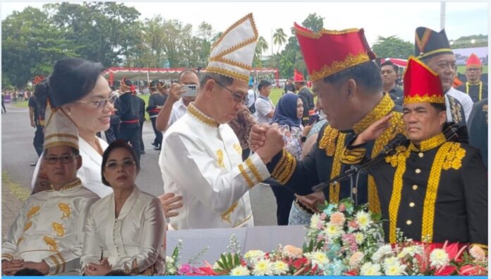 Wali Kota Bitung, Hengky Honandar SE, hadir bersama Ketua TP-PKK Kota Bitung, Ny. Ellen Honandar Sondakh, didampingi Asisten I Pemerintah Kota Bitung Forsman Dandel, S.Sos sebagai bentuk komitmen Pemerintah Kota Bitung dalam menjaga dan merawat nilai-nilai perjuangan Merah Putih.