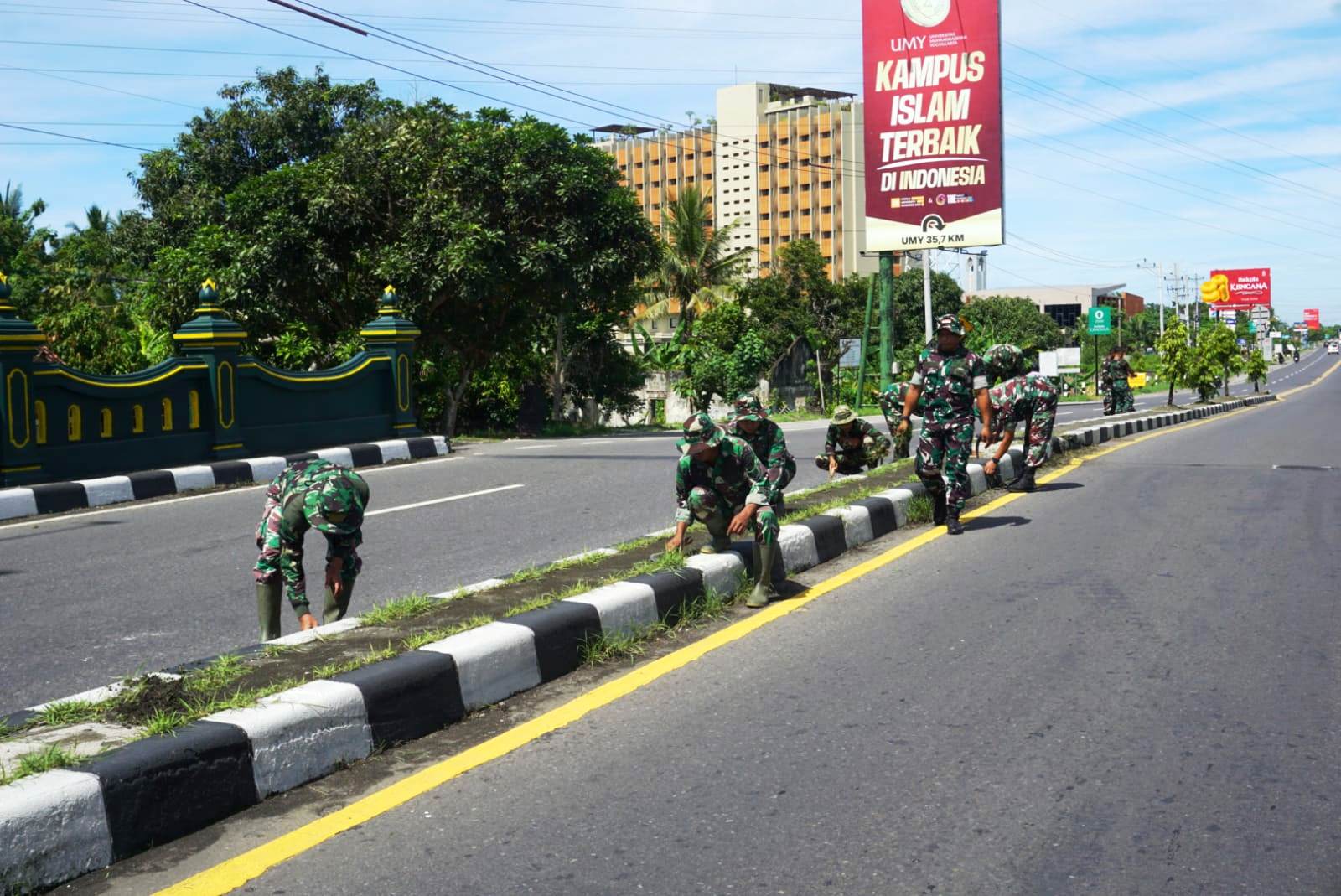 Diantara kegiatan yang laksanakan adalah karya bakti membersihkan sampah dan rumput liar di sepanjang jalan raya area pintu masuk Bandara YIA hingga depan Kantor Kapanewon Temon, Kabupaten Kulon Progo, DIY, Jumat (7/11/2025).