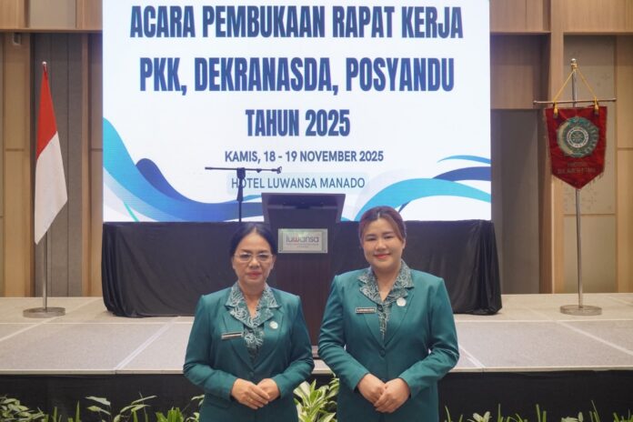 DetailNews.id, Bitung – Ketua TP PKK Kota Bitung, Ny Ellen Honandar Sondakh, SE, bersama Sekretaris TP PKK Kota Bitung, Ny Jacinta Marybell Maringka Gumolung, menghadiri pembukaan Rapat Kerja PKK, Dekranasda, dan Posyandu Tingkat Provinsi Sulawesi Utara yang digelar di Hotel Luwansa Manado, Selasa (18/11/2025).