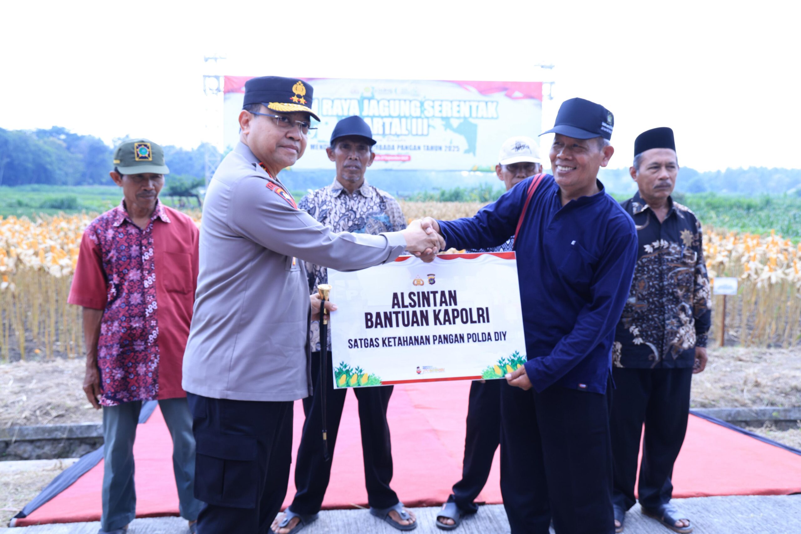 DetailNews.id – Kepolisian Daerah (Polda) Daerah Istimewa Yogyakarta (DIY) bersama petani Kalurahan Sidorejo, Kapanewon Lendah, Kabupaten Kulon Progo, melaksanakan panen raya jagung kuartal III secara serentak, Sabtu (27/09/2025).